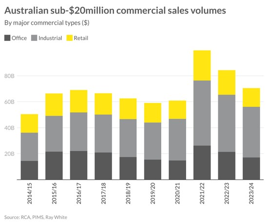 While the sub-$20 million market has cooled from the peak activity seen in 2021/22, when volumes approached $100 billion, the current trend still indicates robust demand for smaller commercial assets. The annual decrease of approximately 15 per cent from those record highs underscores the enduring appeal of this market segment to both investors and owner-occupiers.