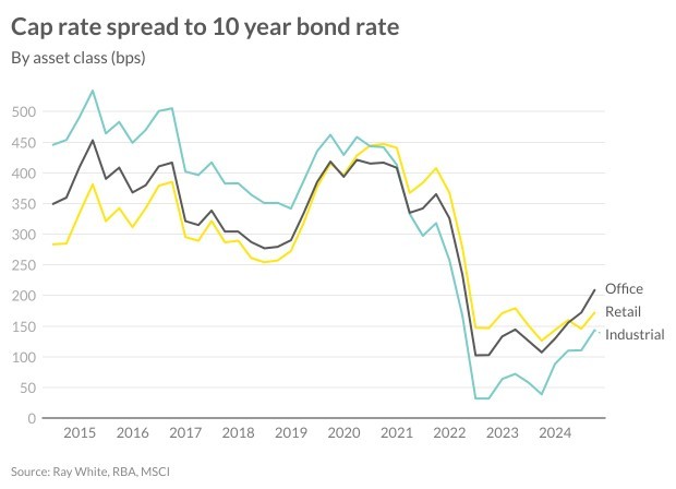 A particularly compelling indicator is the widening spread between capitalisation rates and government bond yields across all asset classes. This expanding spread suggests improved relative value compared to risk-free rates, providing investors with an attractive risk premium that has been expanding since late 2023. This trend stands in stark contrast to the compressed spreads seen during the peak of the market.